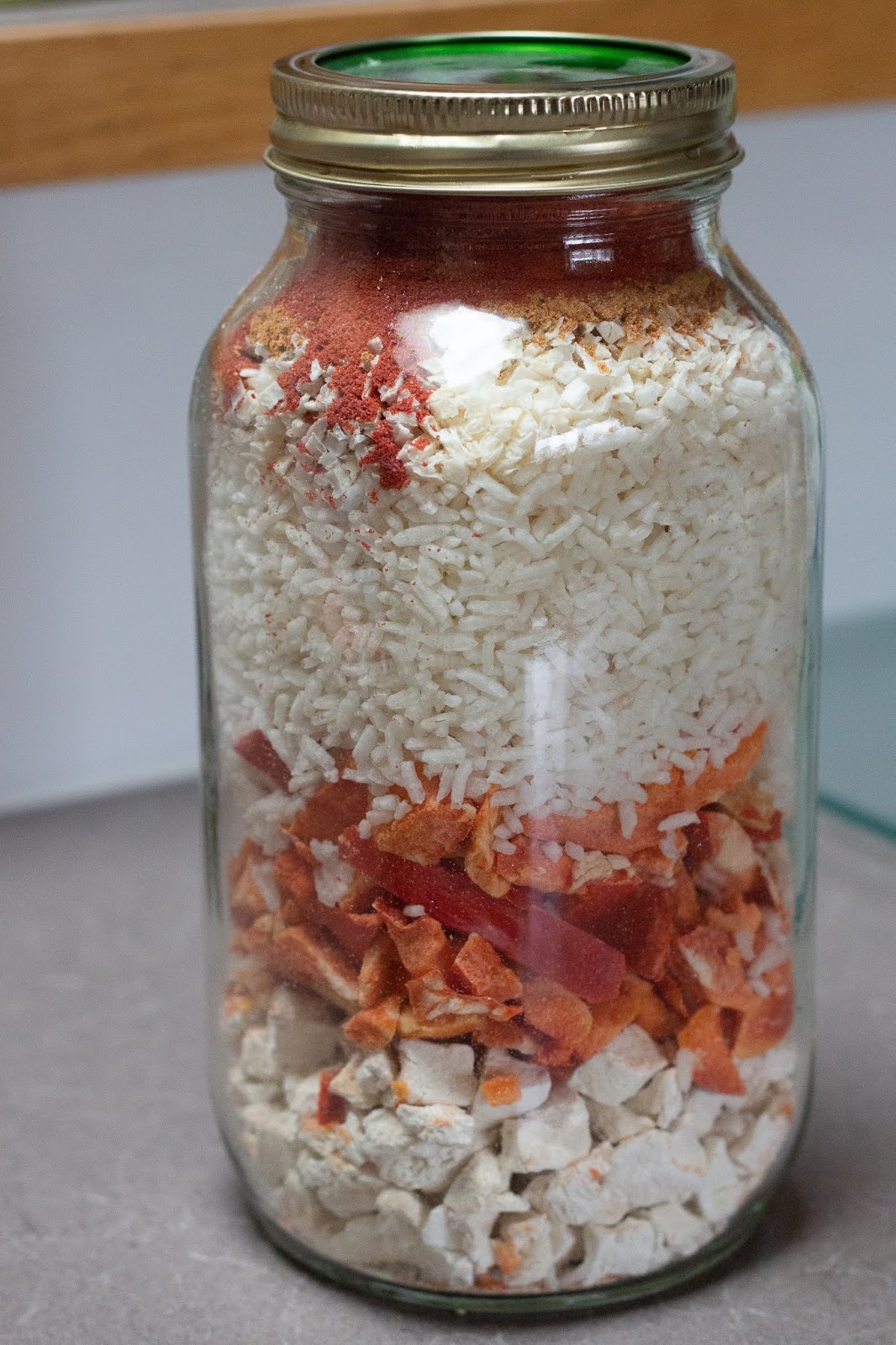 It's about time I finally got you another meal-in-a-jar. This is a recipe I got from my cousin while we were visiting her for a family reunion. Between the two of us, we have six kids and all six of them ate this and asked for more! That's a huge hit in my book, so I definitely needed the recipe. I made 6 jars so that I have lots for my pantry because I know my kids are going to want to eat this over and over. The one adjustment I made was not adding green chilies, and that's only because I didn't have any, not because I don't want them. Once I have some in stock, I will definitely add them to the jars.